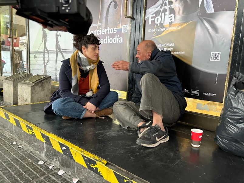 Un grupo de actores y el director de la obra salen por las callesde Buenos Aires a la búsqueda de