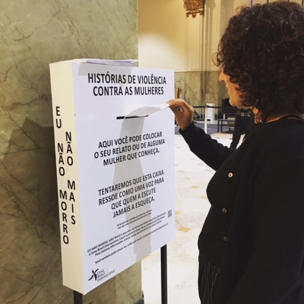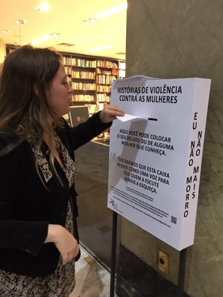 Instalación de buzones en la ciudad donde la gente puede poner sus historias o las de otras sobre violencia hacia las mujeres de manera anónima.